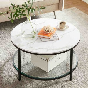 Espacio de Almacenamiento Adicional: El estante inferior de vidrio ofrece espacio adicional para colocar revistas, cajas de almacenamiento o elementos decorativos, maximizando la funcionalidad de la mesa.
