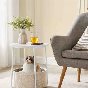 Mesa Auxiliar Redonda con Cesta: Estilo y Funcionalidad para Espacios Pequeños