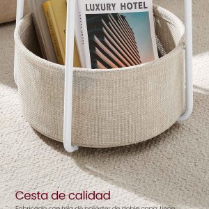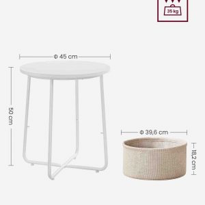 Adecuada para Espacios Pequeños: Con dimensiones de 45 x 50 cm para la mesa y una cesta de 39,6 x 18,2 cm, esta mesa es ideal para espacios reducidos. Funciona perfectamente como mesa auxiliar en el salón o como mesita de noche en el dormitorio, proporcionando mucho espacio para tus artículos esenciales.