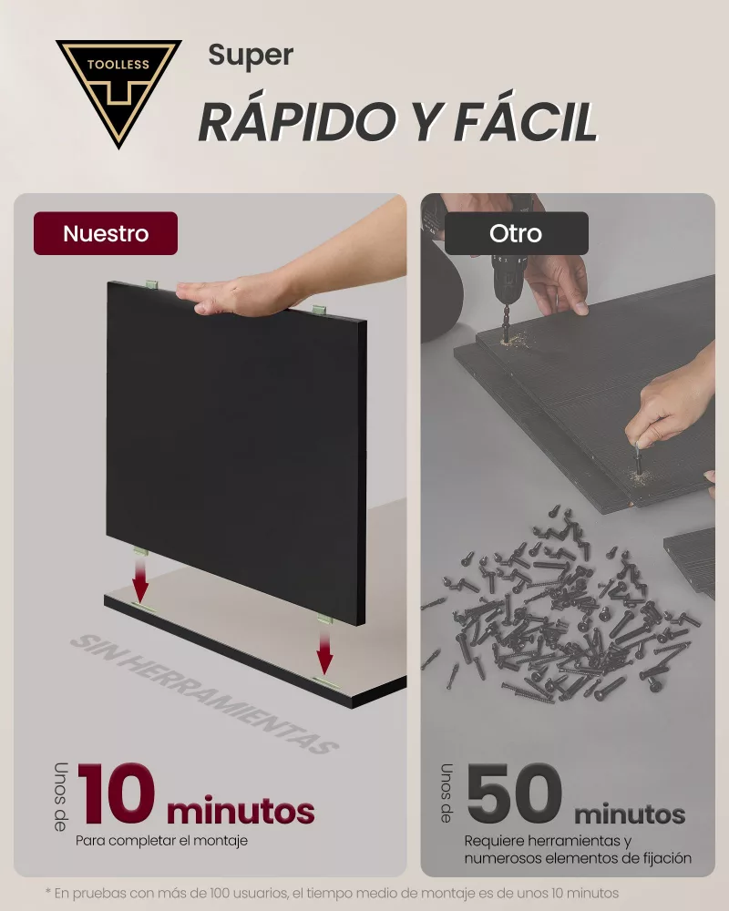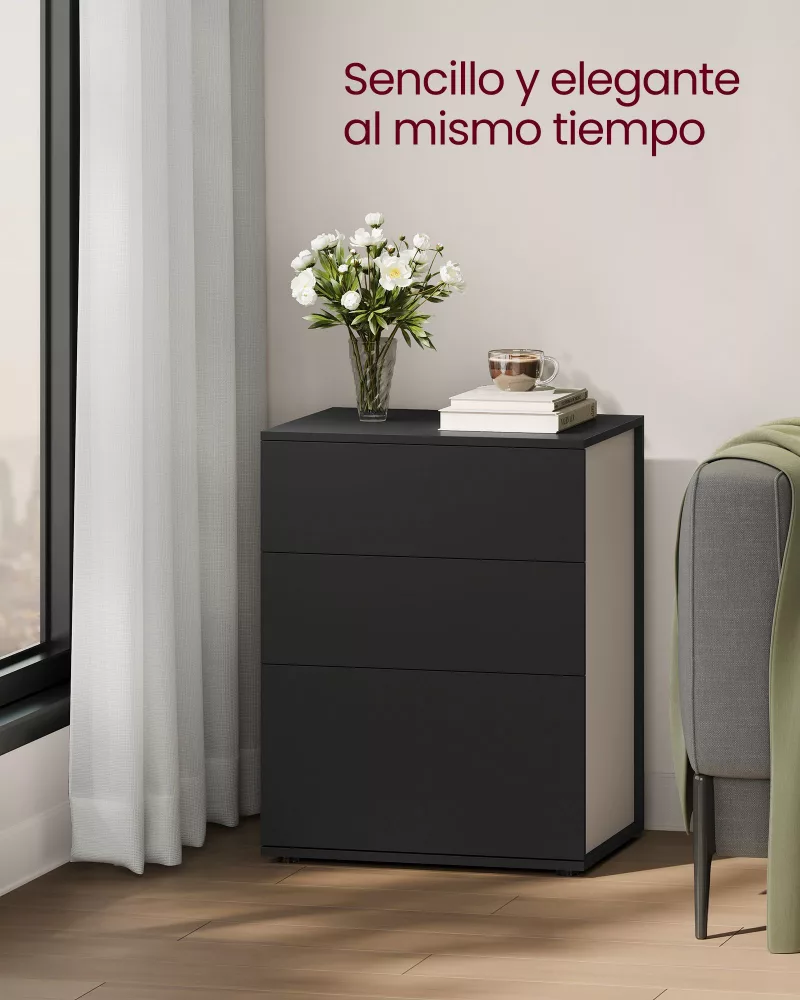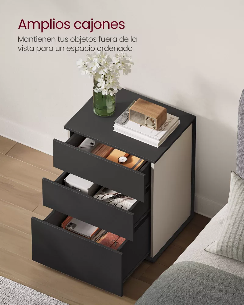 Mesilla de noche negro tinta y beige capuchino montaje ultrarrápido sin herramientas