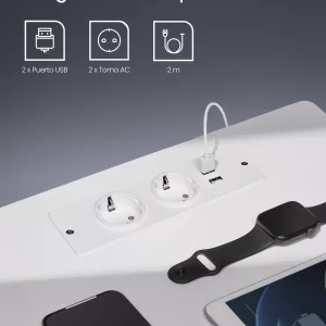 Estación de Carga Integrada: Olvídate del desorden de cables con la regleta integrada que incluye 2 tomas AC, 2 puertos USB y un cable de extensión de 2 metros. Carga hasta 4 dispositivos simultáneamente desde la comodidad de tu cama o sofá. Además, la caja de cables en la parte posterior mantiene todos los cables ocultos, ofreciendo un aspecto limpio y ordenado.