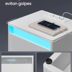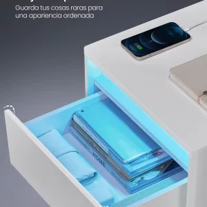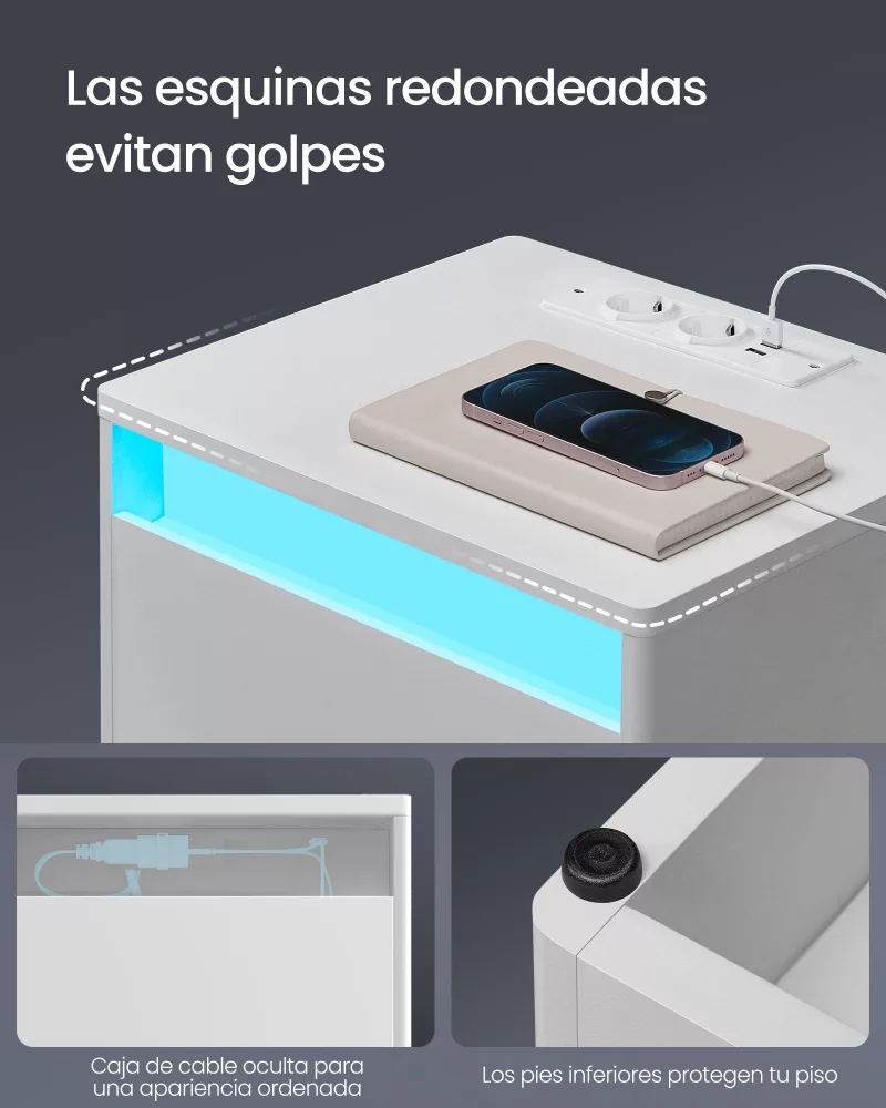 Mesilla de Noche con Tiras LED Dobles y Estación de Carga: Funcionalidad e Iluminación Personalizable