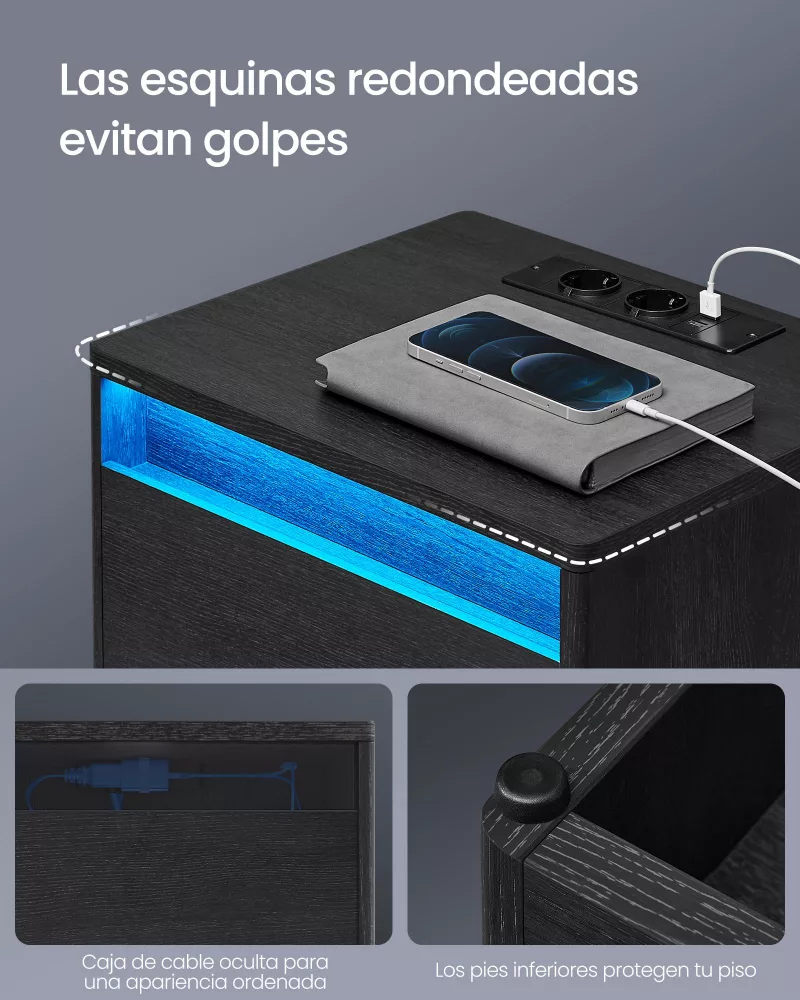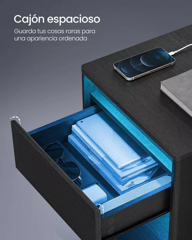 Mesilla de Noche con Tiras LED Dobles y Estación de Carga: Funcionalidad e Iluminación Personalizable