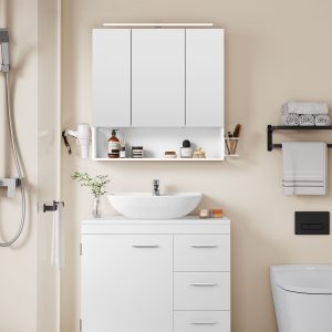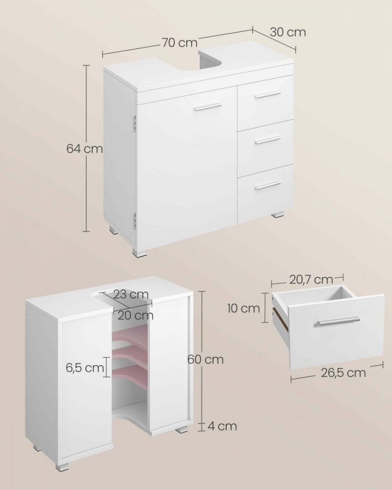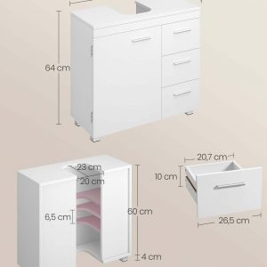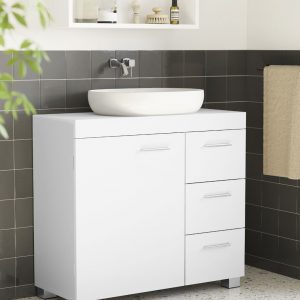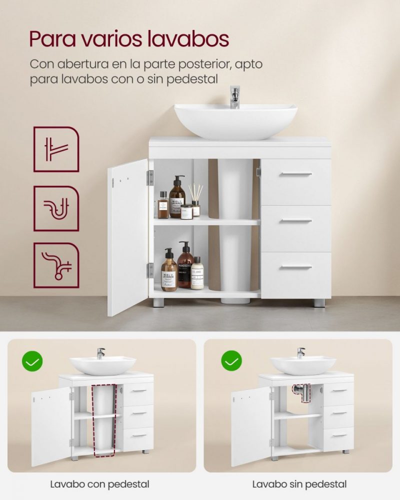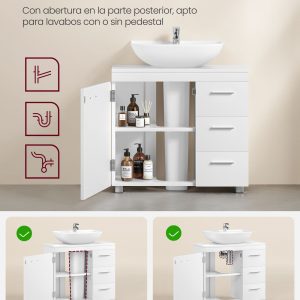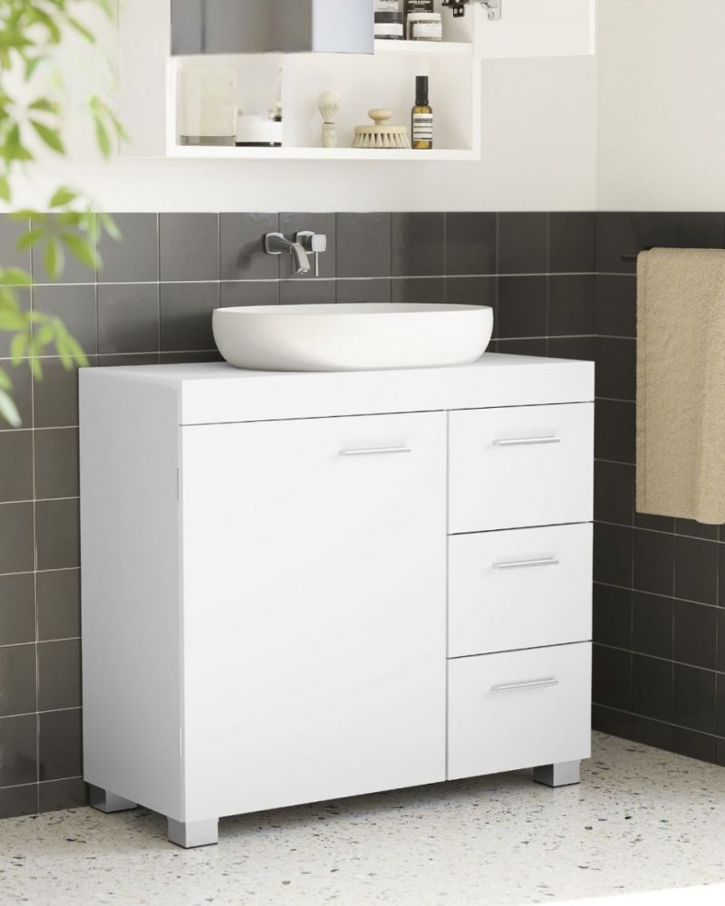 Mueble bajo lavabo para baño blanco, 3 cajones y 2 compartimentos