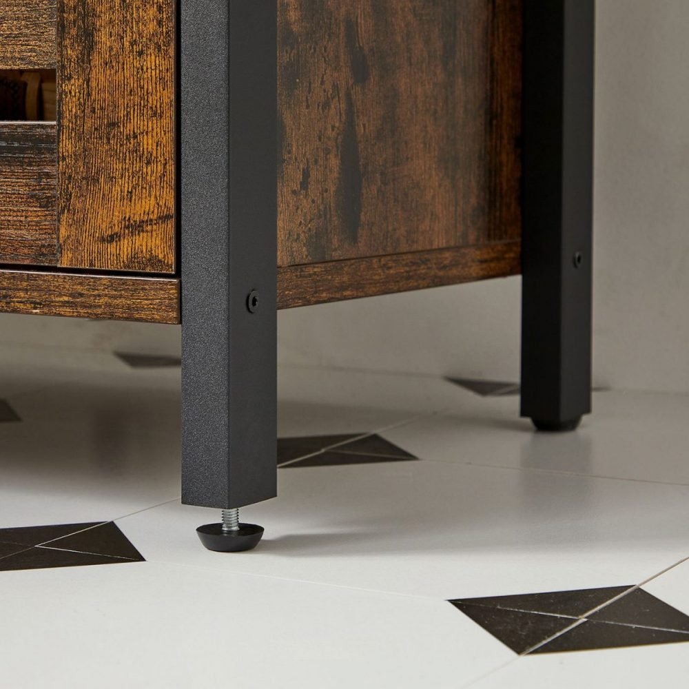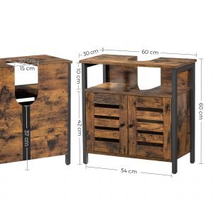 Mueble de lavabo de baño con puertas estilo persiana y estante