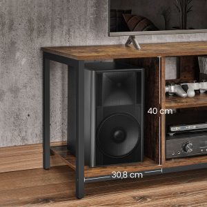 Espacio de Almacenamiento Generoso: La amplia superficie superior de 120 x 40 cm, junto con 2 estantes abiertos en el centro y 2 adicionales en los lados, ofrece el espacio perfecto para tus dispositivos de entretenimiento, películas, cajas y otros accesorios.