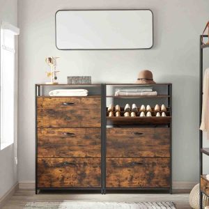 Dale a tu pasillo un nuevo aspecto y mantén tus zapatos ordenados con nuestro Mueble Zapatero Elegante. Diseñado para combinar funcionalidad y estilo, este zapatero es la solución perfecta para organizar tu calzado mientras añade un toque de elegancia industrial a tu hogar. Con 3 compartimentos espaciosos y una superficie superior útil, este mueble no solo ahorra espacio, sino que también facilita tu día a día.