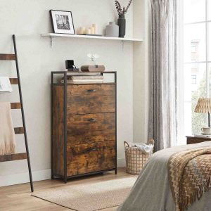 El Estilo Impresiona: Este mueble no solo es funcional, sino también un elemento decorativo. Con una combinación de tablero de aglomerado marrón rústico y acero negro, su diseño industrial elegante impresionará a tus invitados y mejorará la estética de tu hogar.