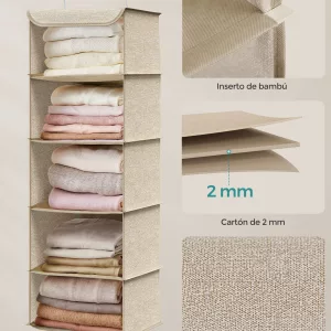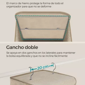 Material: Tela no Tejida de 80 g/㎡, Inserto de Bambú, Marco Superior y Gancho de Metal, Cartón de 2 mm de Grosor