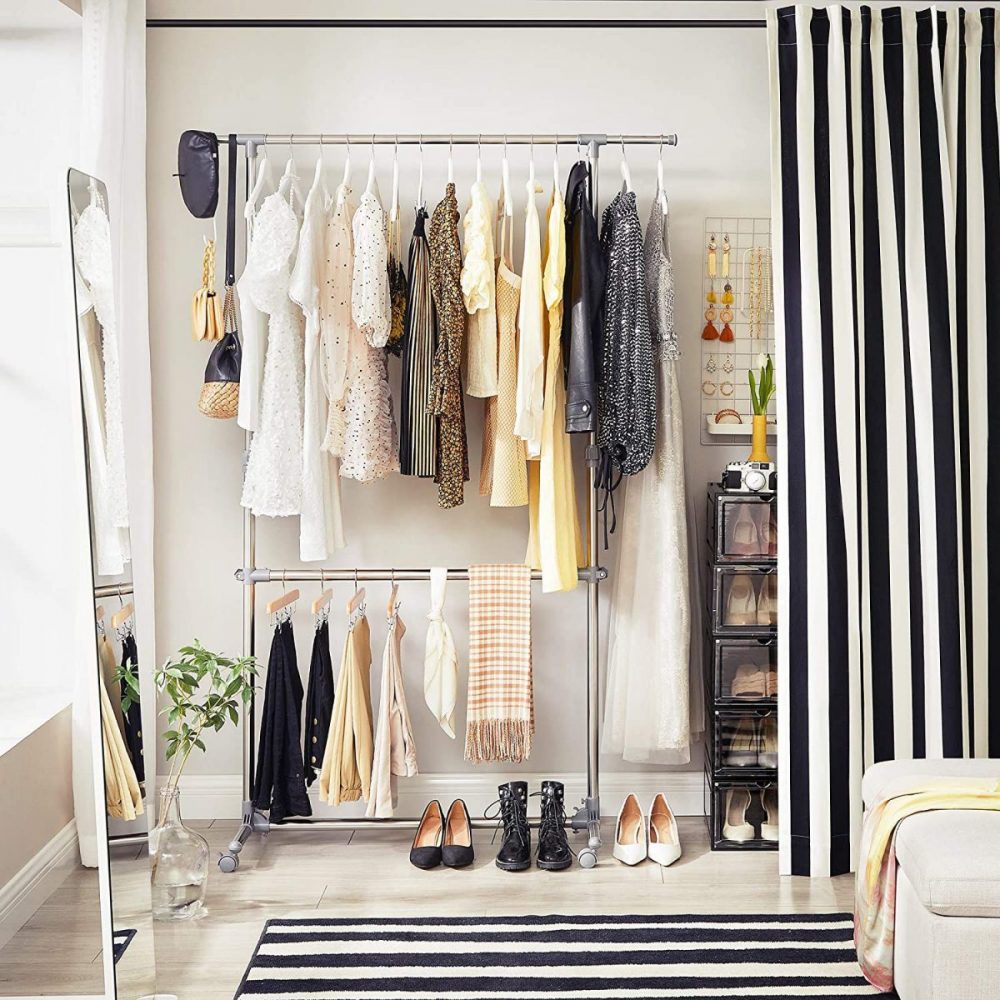 Perchero Regulable con Ruedas: Almacenamiento Práctico y Elegante