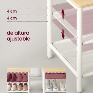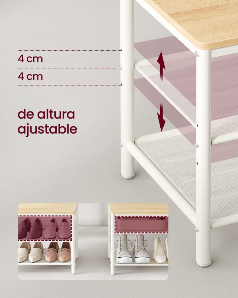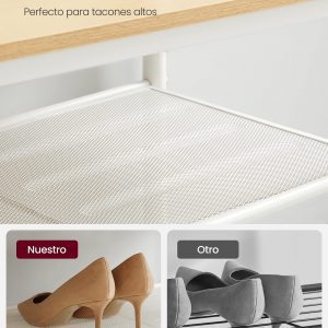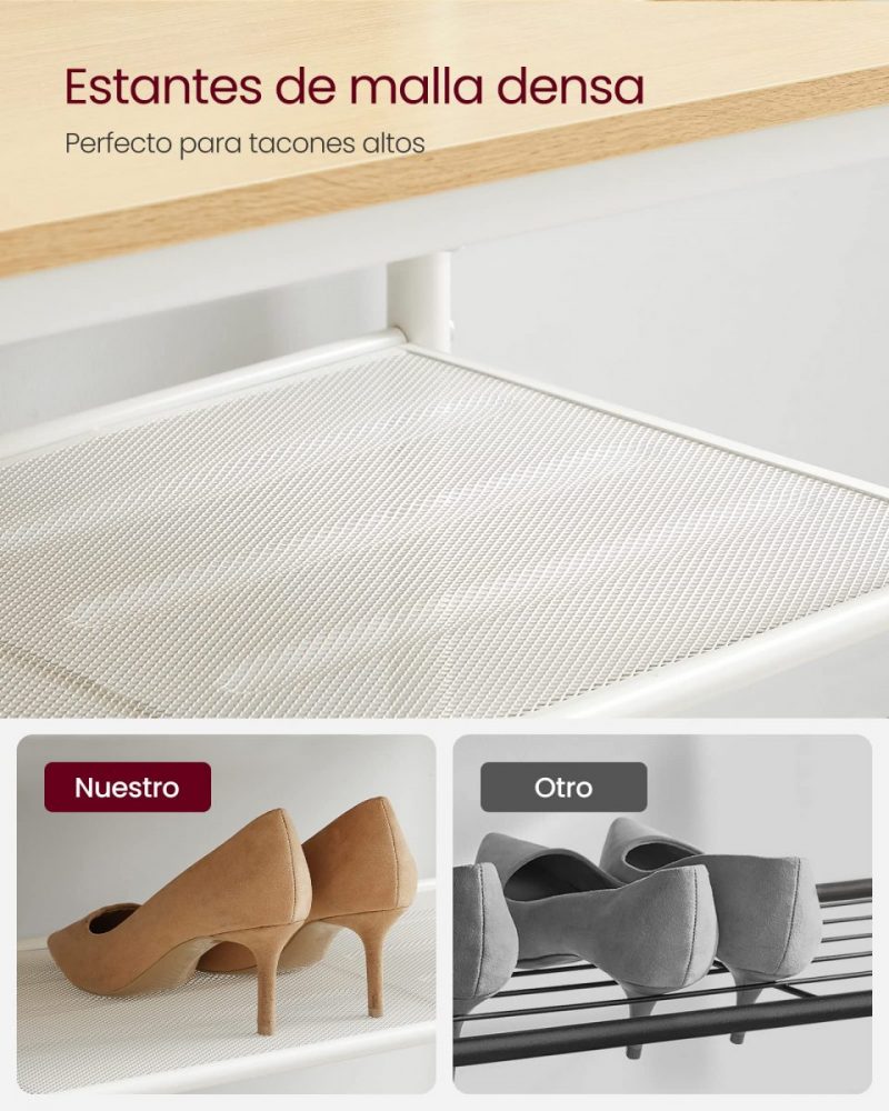 Adaptable a tus Necesidades: El estante central ajustable ofrece flexibilidad para almacenar desde zapatillas hasta botas altas, mientras que los estantes de malla firme sostienen perfectamente los tacones.