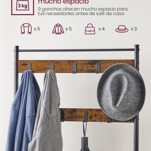 Este perchero zapatero tiene 9 ganchos con 2 filas, cada uno con una capacidad de carga de 3 kg, y ofrece mucho espacio para colgar ropa, bolsos, sombreros, bufandas y más; son resistentes al óxido para un uso duradero.