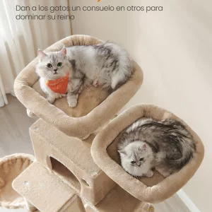 Parque Infantil Todo en Uno: Equipado con 2 plataformas, 2 cuevas, 1 cesta, 2 pompones y 1 hamaca, este árbol ofrece una variedad de opciones para que los gatos jueguen, duerman y se relajen.