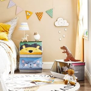 Introduce a los más pequeños en un mundo donde el orden se combina con la fantasía con nuestro exclusivo set de 3 organizadores. Diseñados pensando en los niños, estos organizadores no solo capturan la atención con sus divertidas ilustraciones de leoncito, conejito y gatito, sino que también sorprenden con su innovadora tapa magnética. Es hora de transformar la recogida de juguetes, novelas gráficas, e incluso robots del alfabeto en una emocionante aventura.