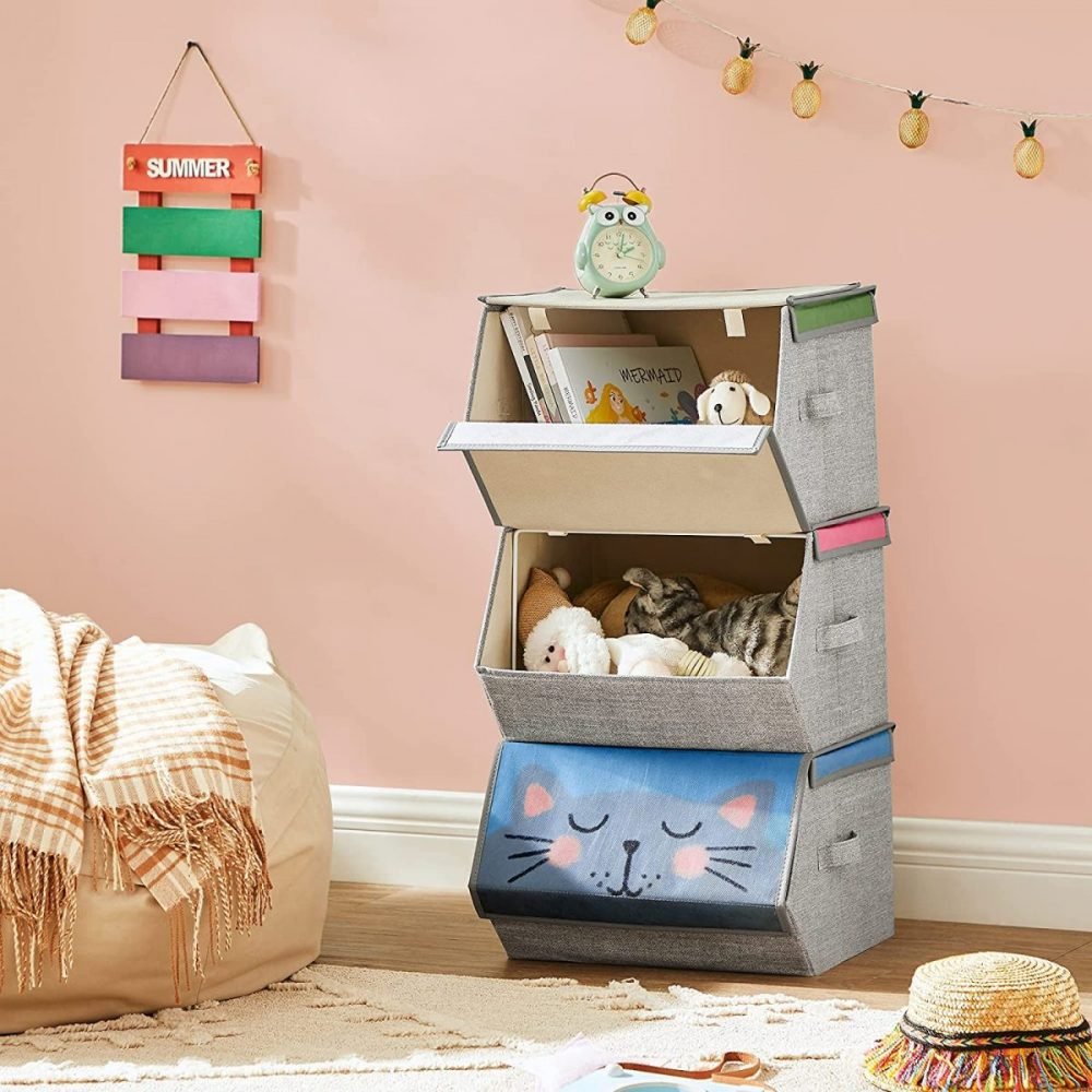 Ligeras y Fáciles de Transportar: Con un peso de solo 0,3 kg y equipadas con asas laterales, incluso los más pequeños pueden mover estas cajas fácilmente. Su diseño atractivo y funcional incentiva a los niños a participar activamente en mantener sus espacios ordenados.