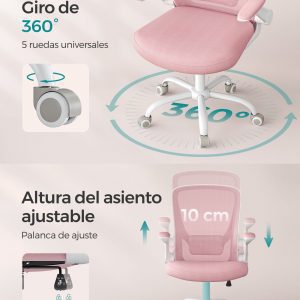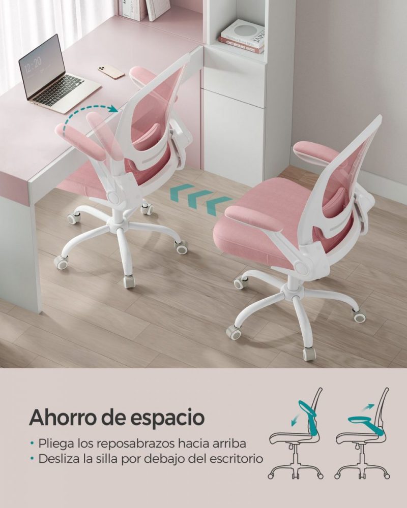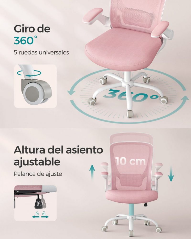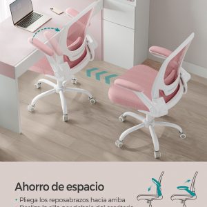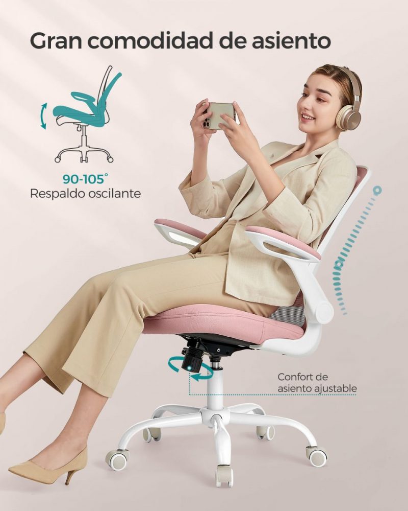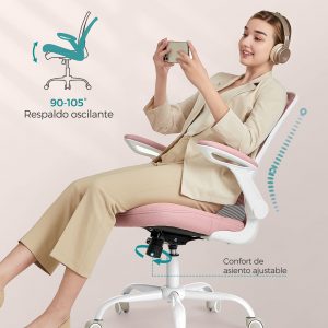 Ajuste Personalizado y Función de Oscilación: Ajusta la altura del asiento y del soporte lumbar para encontrar tu ajuste perfecto. Los reposabrazos abatibles permiten deslizar la silla bajo el escritorio, maximizando el espacio. Además, la función de oscilación (90°-105°) te ofrece momentos de relajación entre tus tareas.