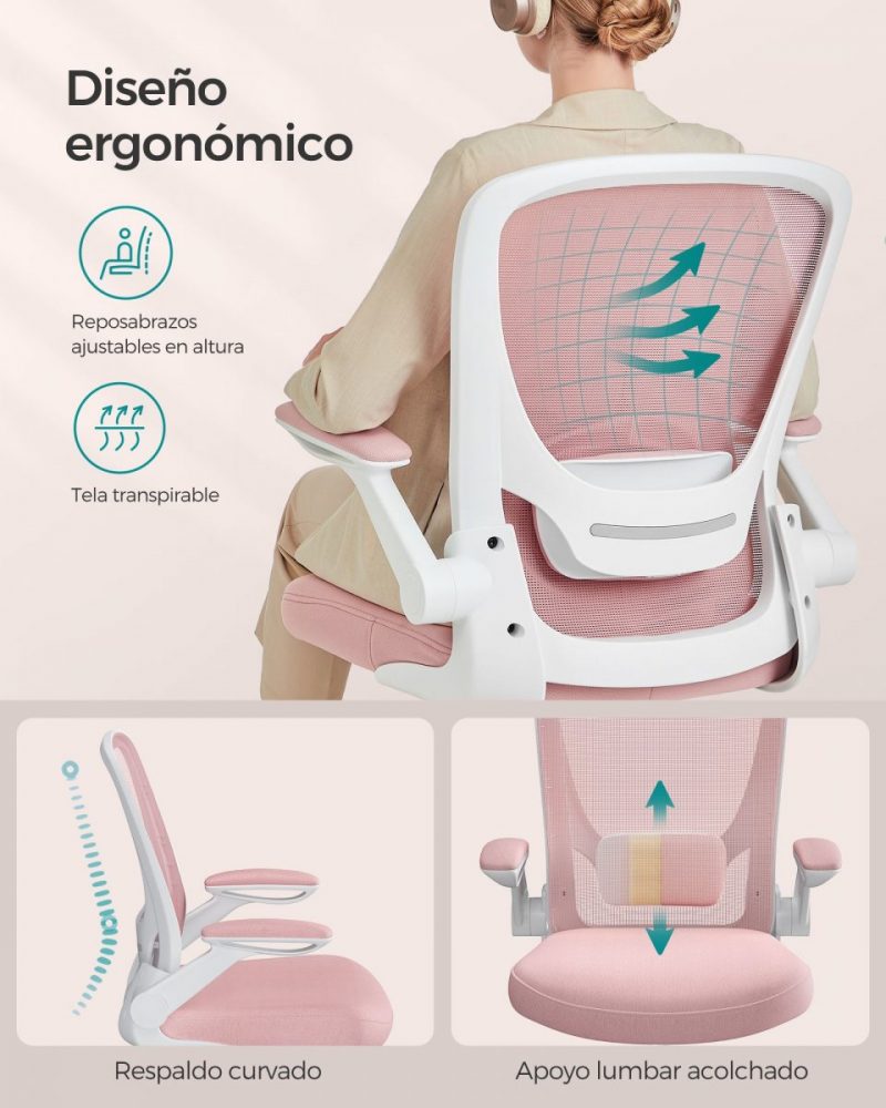 Soporte Lumbar Ajustable: Con un respaldo en forma de S y soporte lumbar acolchado ajustable, esta silla abraza tu espalda de manera cómoda, proporcionando un soporte esencial que reduce la fatiga y el estrés en tu espalda durante largos períodos de sentado.