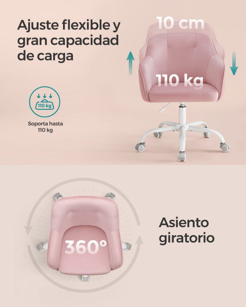 Estilo y Comodidad: El diseño curvo del respaldo y los reposabrazos no solo aporta un toque moderno a tu oficina en casa sino que también asegura una experiencia de asiento cómoda y envolvente.