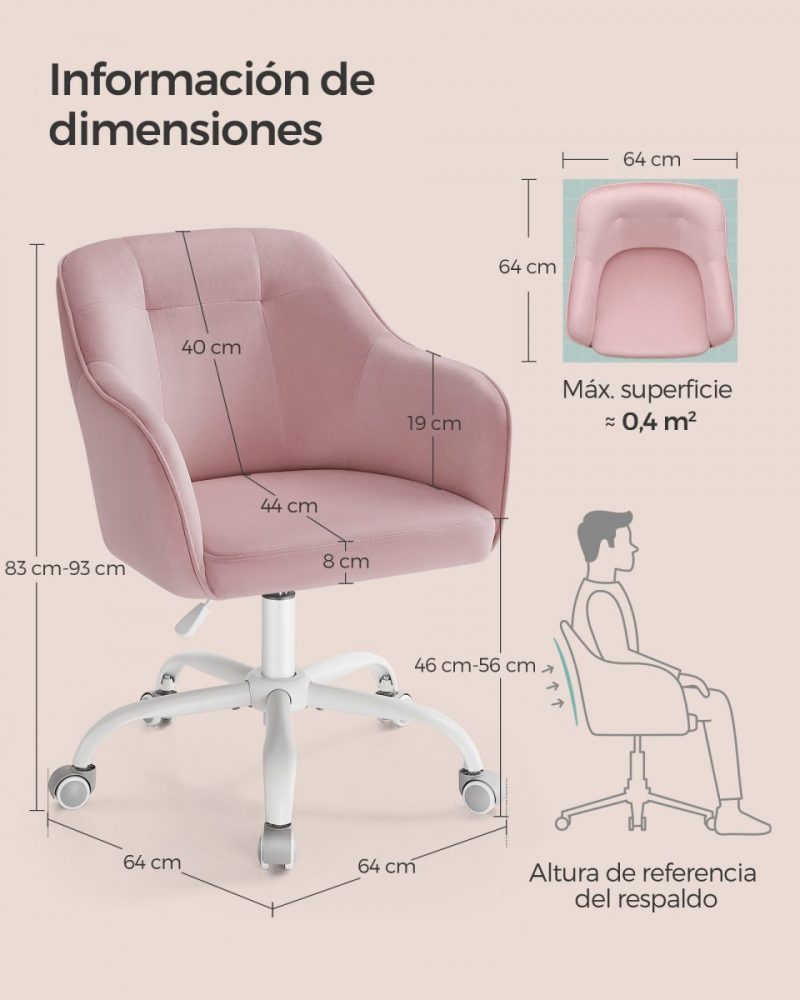 Dimensiones: 64 x 64 x 83-93 cm (Profundo x Ancho x Alto)