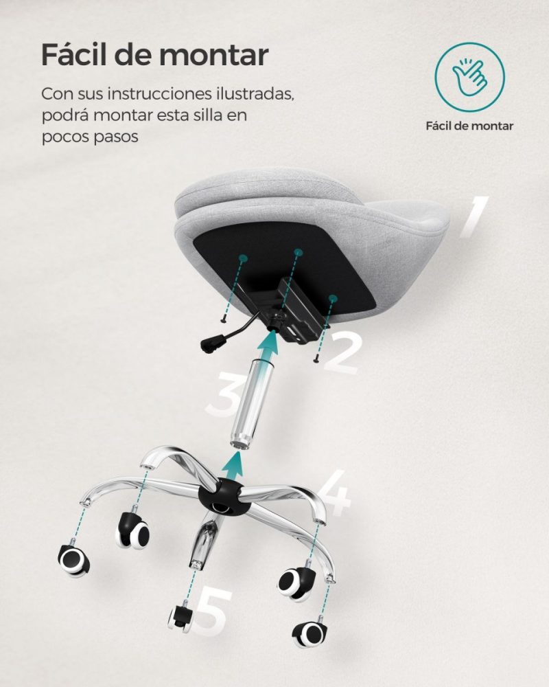 Fácil de Montar: Montaje sencillo en pocos pasos. Fija la placa base a la parte inferior del asiento con tornillos, instala las bombonas de gas y las ruedas, y tu silla estará lista para usar.