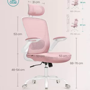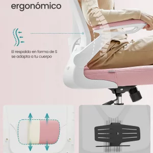 Silla de escritorio ergonómica giratoria con soporte lumbar, rosa