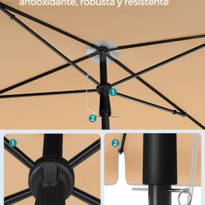 Material: Mástil de Acero, Cubierta de Poliéster de 160 g/m²