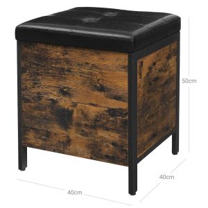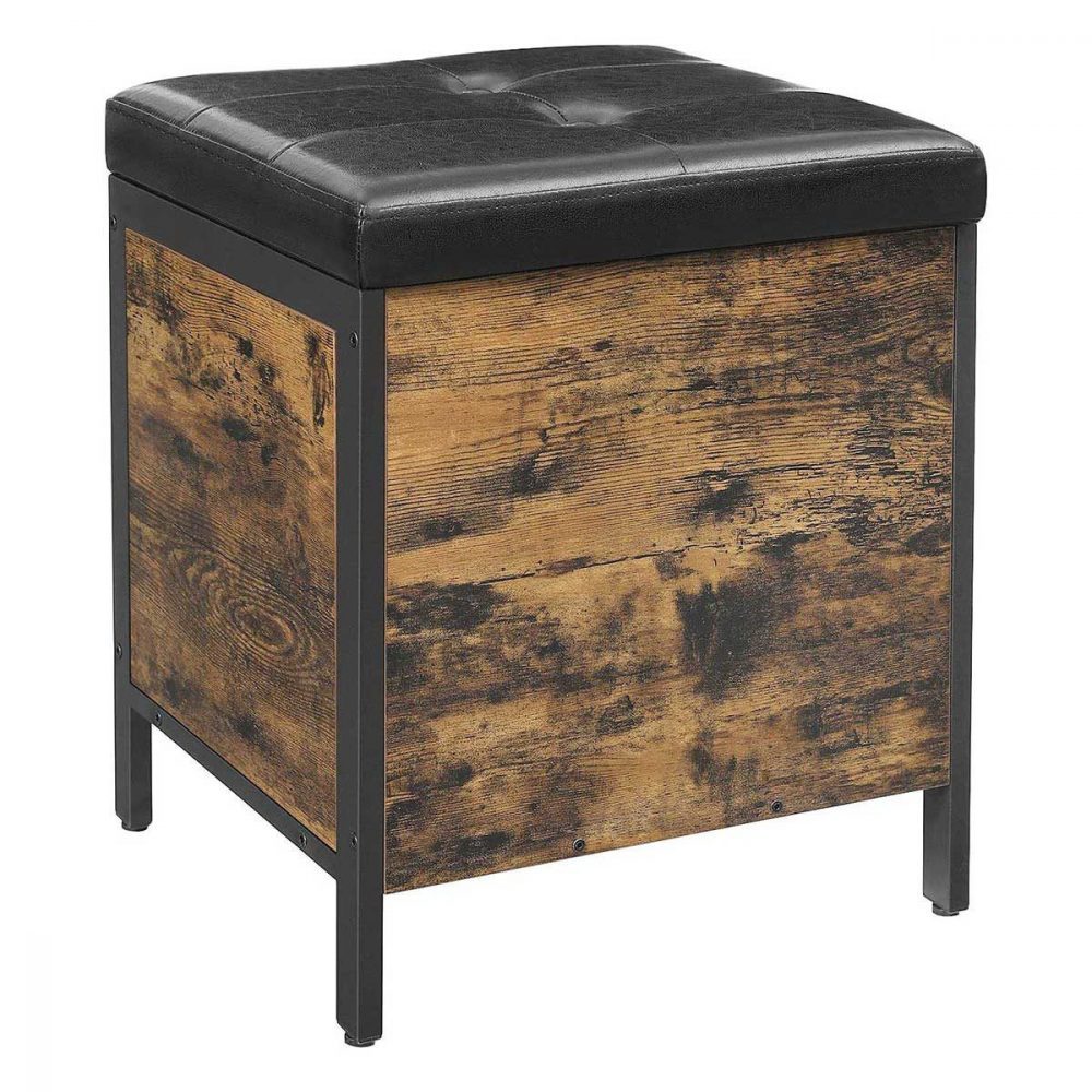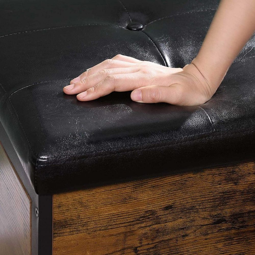 Materiales de Calidad: Con una cubierta de suave cuero sintético y un robusto marco de acero negro, este banco no solo promete durabilidad y estabilidad, sino que también agrega un toque de elegancia rústica a tu decoración.