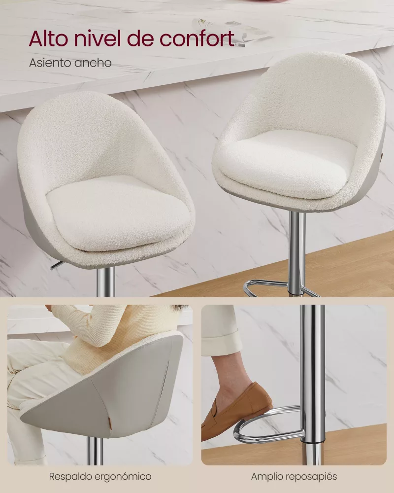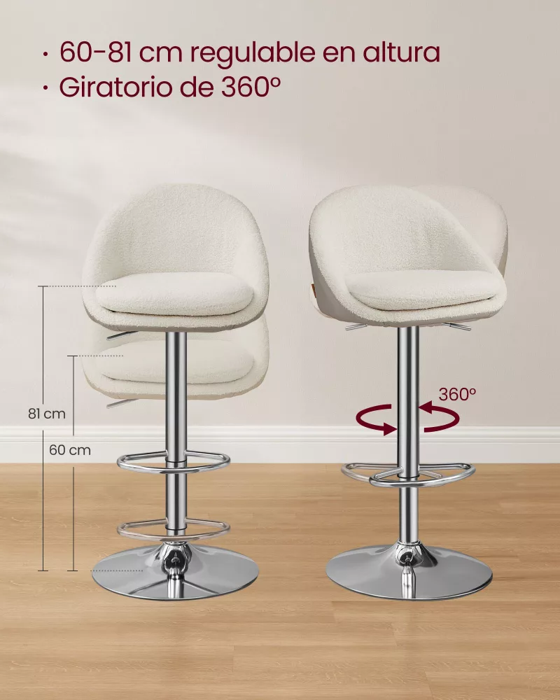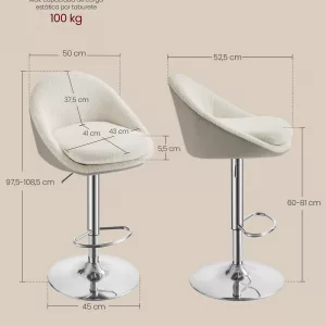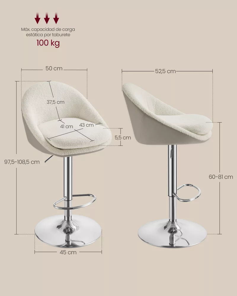 Dimensiones por taburete: 52,5 x 50 x (97,5-108,5) cm (Profundo x Ancho x Alto)
