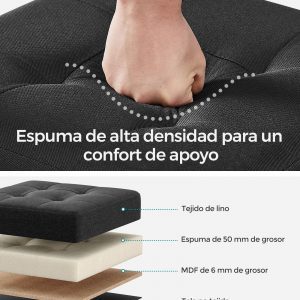 Prepárate para experimentar un confort sin precedentes gracias al relleno de espuma de alta densidad del asiento y su cubierta de tela de lino de imitación. Suave, transpirable y diseñado para evitar deformaciones, este banco te ofrece el lugar perfecto para relajarte en cualquier momento del día.