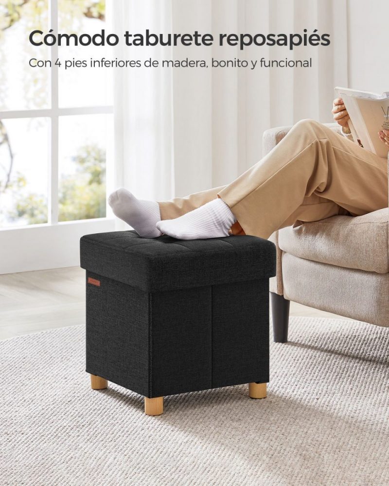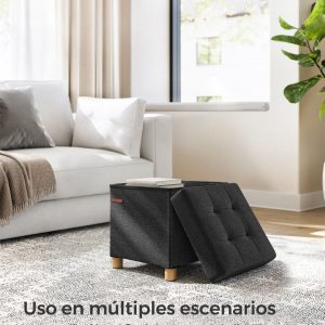 No solo es un banco; es una solución de almacenamiento de 37 litros, un reposapiés, una mesa de centro y mucho más. Con dimensiones de 38 x 38 x 40 cm, este mueble versátil se ajusta perfectamente al final de tu cama, junto a la ventana o como un elegante complemento en tu salón.