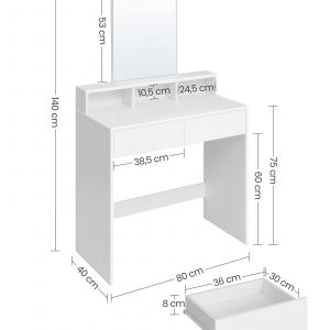 Tocador moderno blanco brillante con espejo, 40x80x140 cm