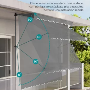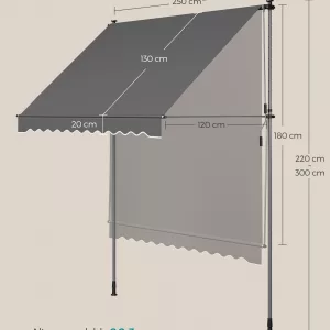 Toldo Manual Retráctil Regulable en Altura 250 x 120 cm Gris Antracita