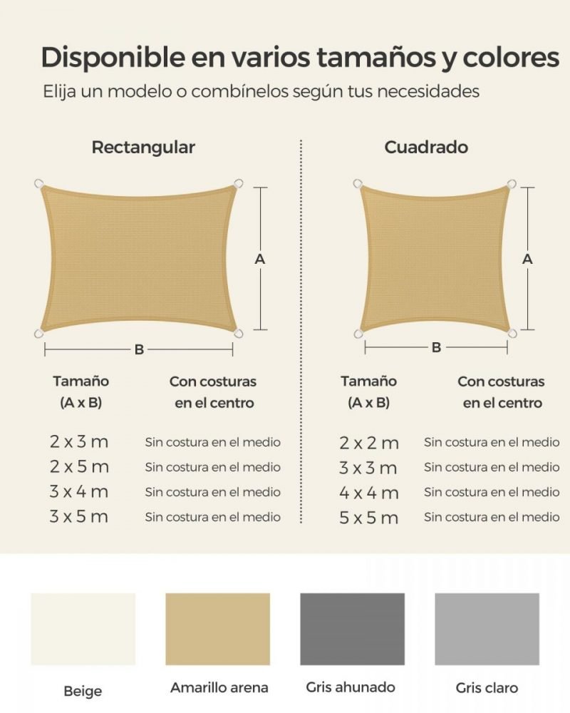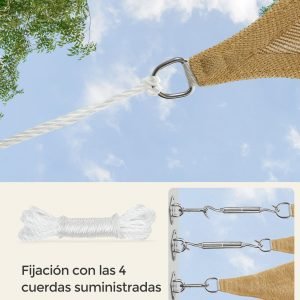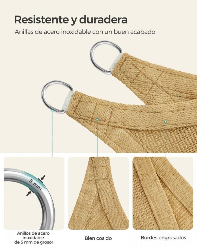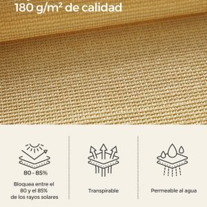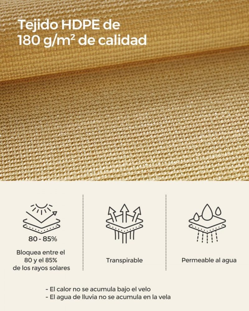 Material: Tejido HDPE (Polietileno de Alta Densidad) de 180 g/m², Anillo de Acero Inoxidable