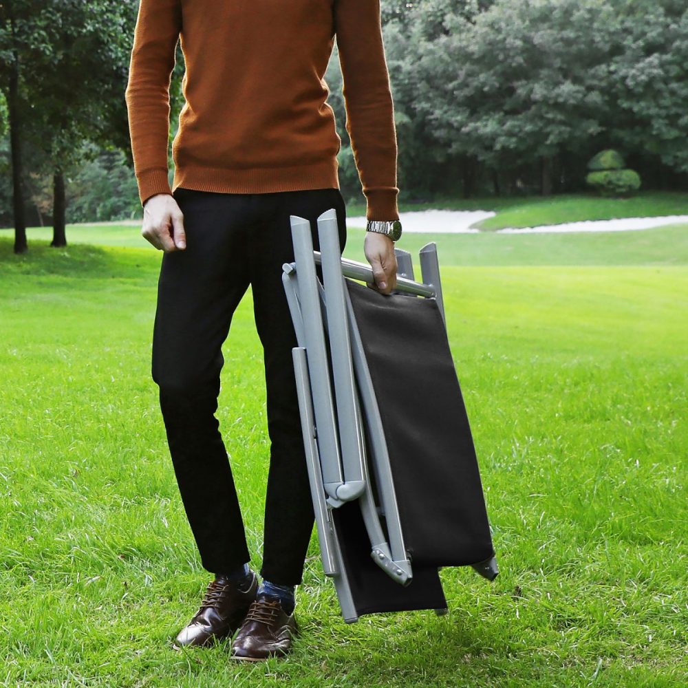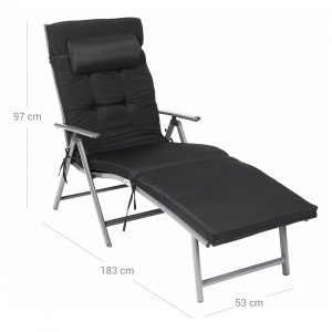 Construida pensando en la durabilidad y el confort, esta tumbona cuenta con un tejido de fibra sintética de alta calidad, transpirable, resistente a los rayos UV y a la humedad, asegurando una experiencia de descanso fresca sin preocupaciones por la sudoración. La estructura de aluminio no solo proporciona estabilidad y seguridad, sino que también soporta hasta 250 kg, lo que la convierte en una opción robusta y confiable para todos.