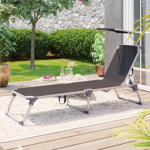 Tumbona reclinable con parasol y reposacabezas gris