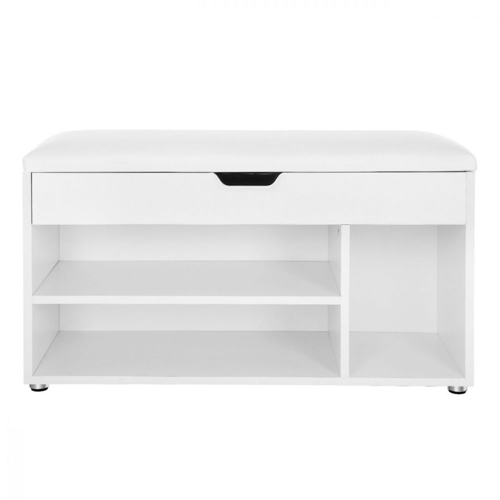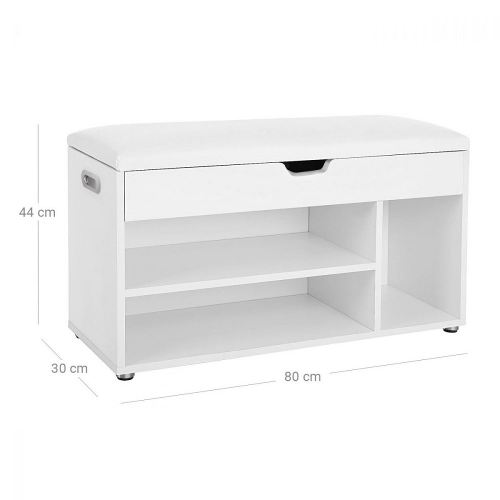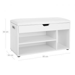 Zapatero con asiento, 2 estantes, carga 150 kg, blanco