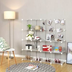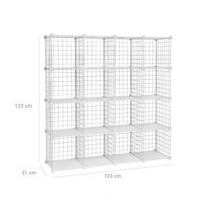 Zapatero modular alambre metálico, 16 cubos, blanco