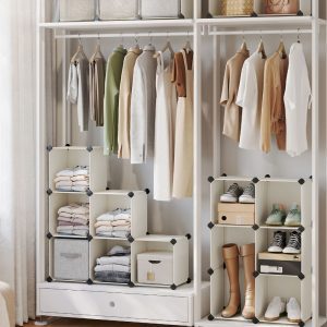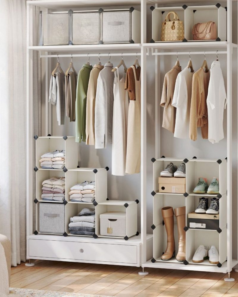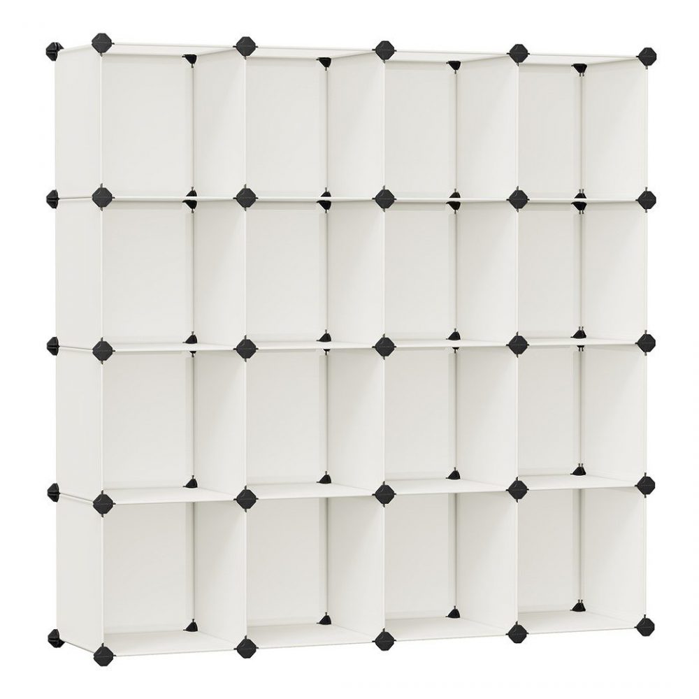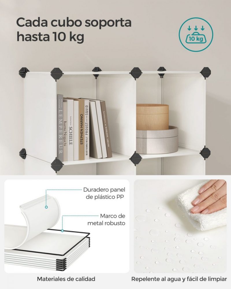 Zapatero modular apilable, 16 cubos, espacioso, blanco crema