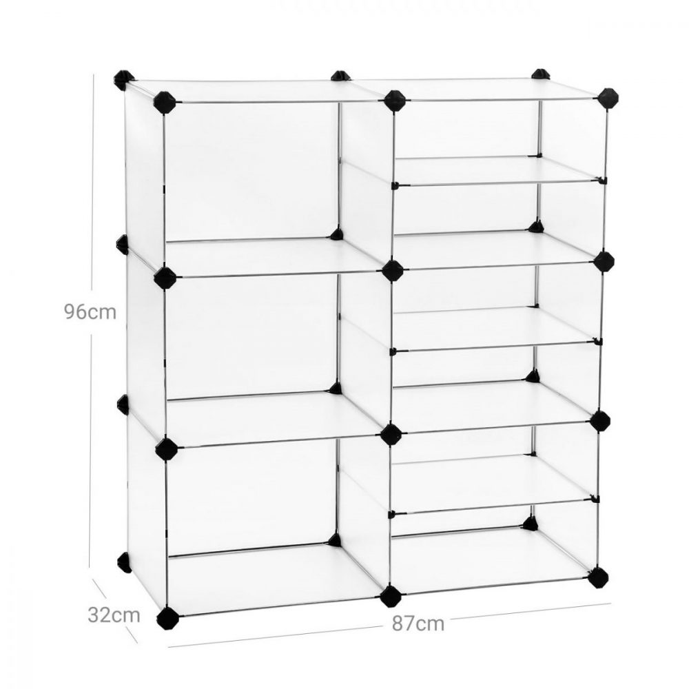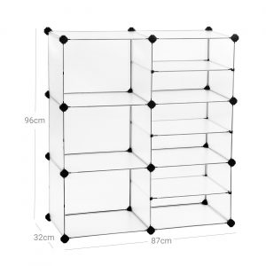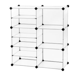 Flexibilidad Creativa a Tu Alcance: Nuestro armario de almacenaje está diseñado para inspirar tu creatividad. Con la ayuda de prácticos ganchos, puedes transformar 3 cubos grandes en 6 pequeños, adaptando el espacio a tus necesidades específicas. La estructura de enclavamiento, fácil de ensamblar, te brinda libertad para experimentar con diferentes configuraciones, haciendo de este armario una pieza tan única como tu hogar.